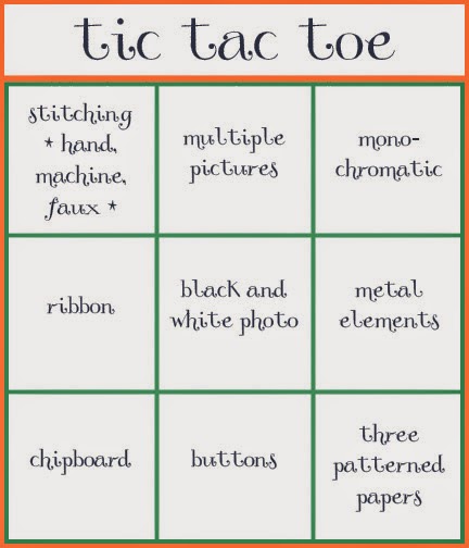 Here is the tic tac toe board I created, of which I used the top row for my layout.